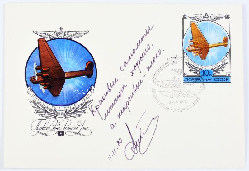 Oleg Konsztantyinovics Antonov (1906-1984) szovjet repülÅ‘mérnök autográf aláÃrása emlékborÃtékon. /