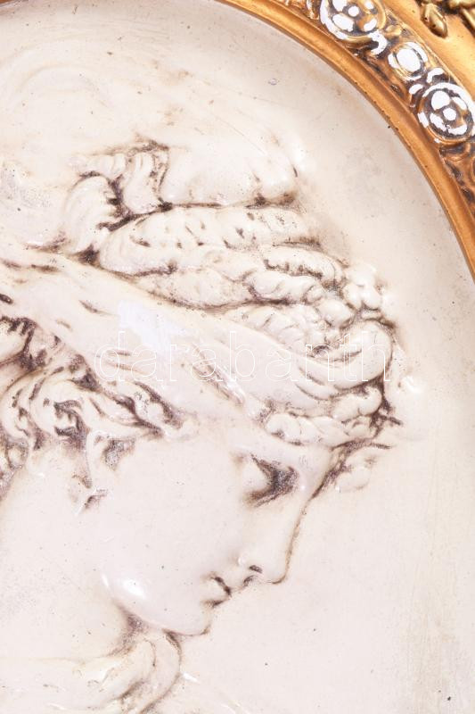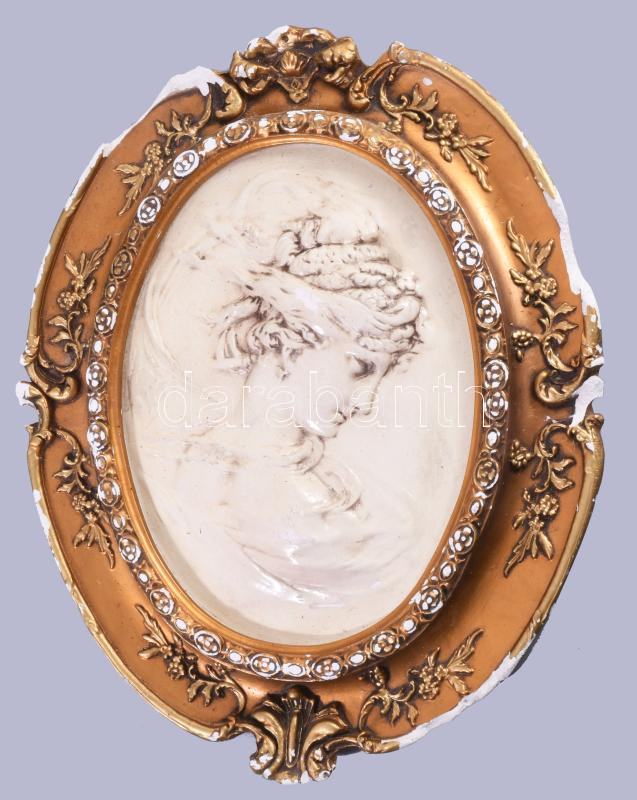Antik gipsz fali dekorációs kép. Aranyozott, részben mázas. Sérült. 42x52 cm