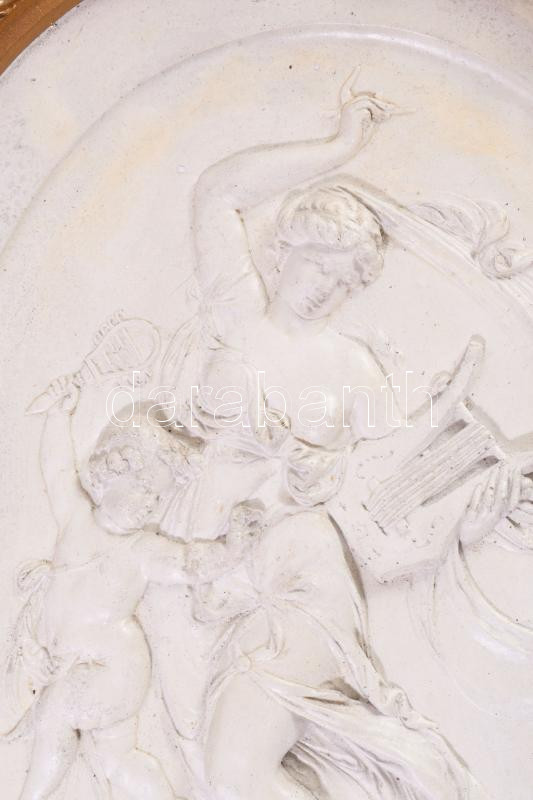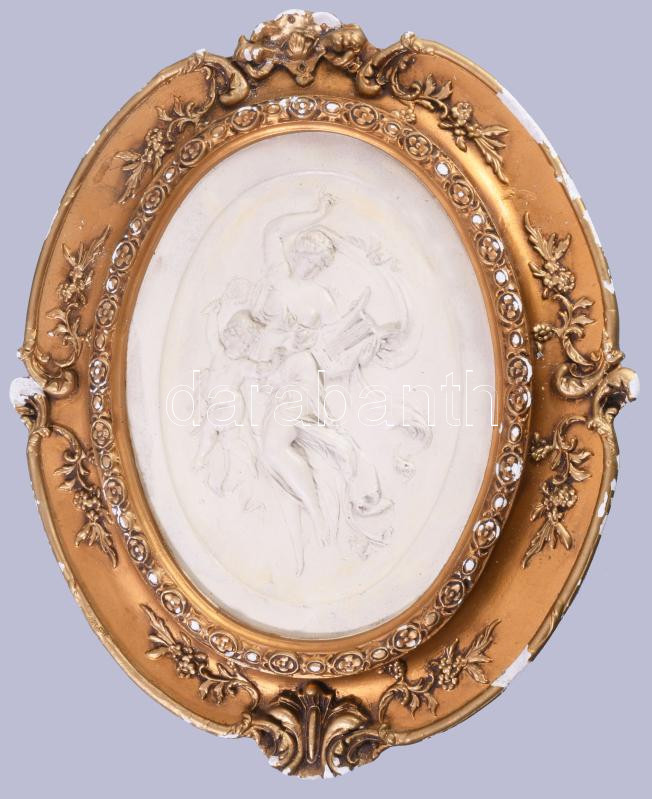 Antik gipsz fali dekorációs kép. Aranyozott, részben mázas. Sérült. 42x52 cm