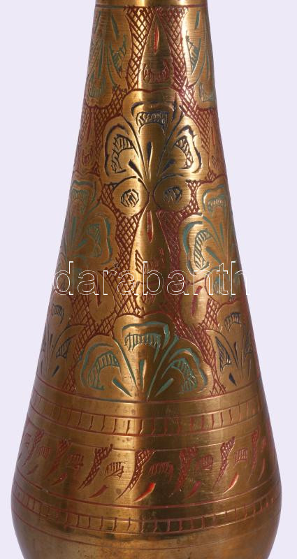 Zománcmintás réz váza, m: 36 cm