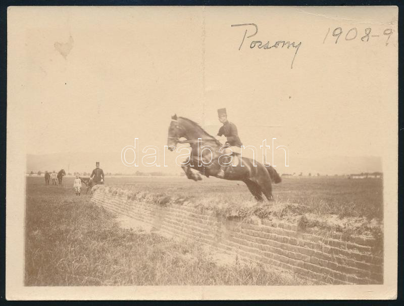 1908 Vitéz csataji Csatay Lajos (született Tuczentaller) (1886-1944. október 16.) honvédelmi miniszter fiatalkori katonai iskolás, lovat ugrató fotója feliratozva . Hajtásnyommal 12x9 cm