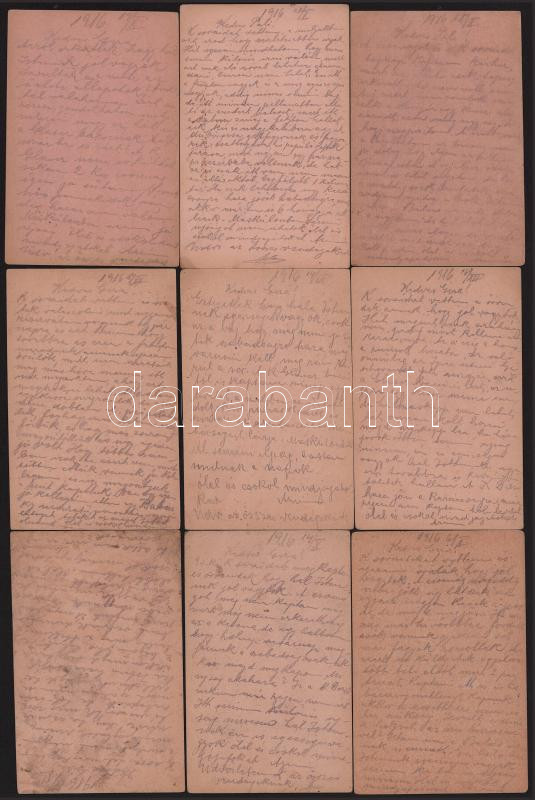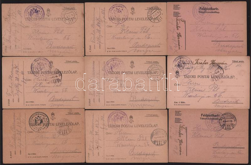 1916 Fischer Herrmann, a cs. és kir. 38. gyalogezred katonájának 9 db tábori posta levelezőlapja, "K. u. K. Infanterieregiment Alfons XIII. König von Spanien No. 38" bélyegzéssel