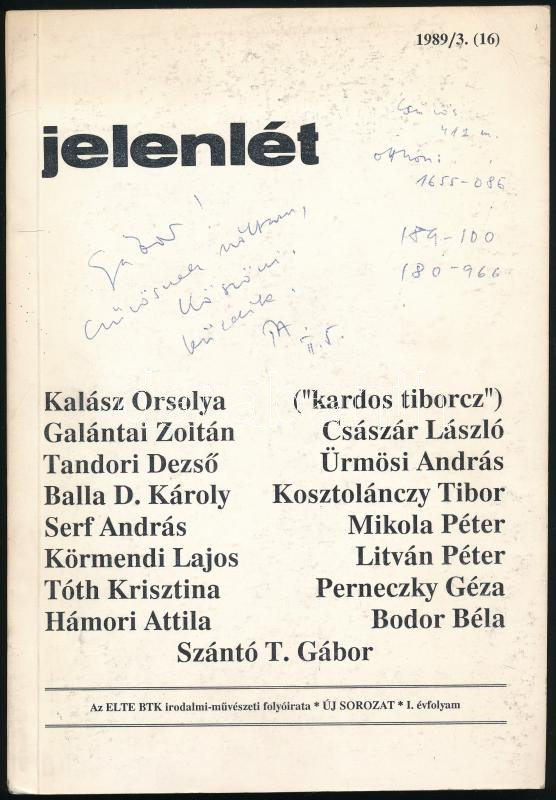 1989 Jelenlét folyóirat 1989/3. száma, Petőcz András író, szerk. biz tag dedikációjával, 96p