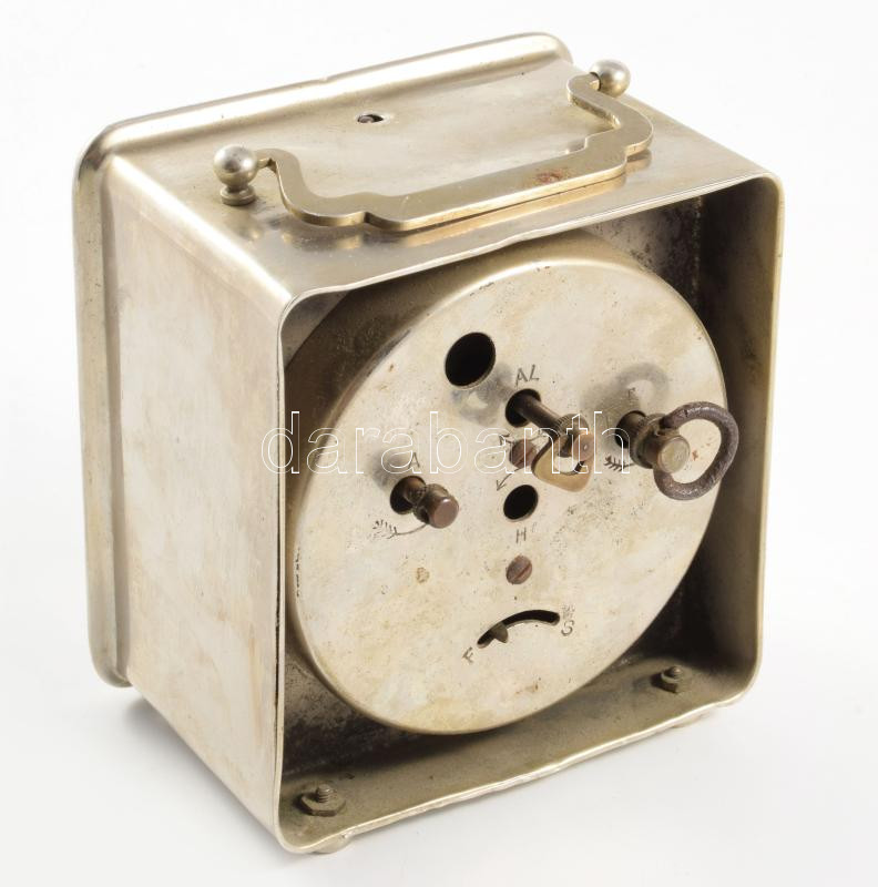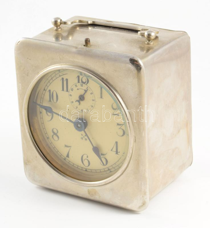 cca 1930-1950 Bauhaus stílusú ébresztőóra. Ébresztő segédszámlappal, felhúzókkal, kis ütődésnyommal, 11x11cm