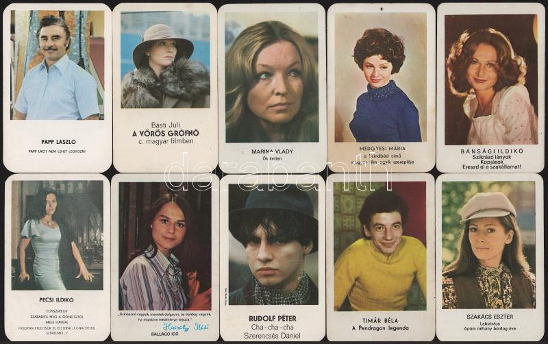 1972-1985 Színészeket, színésznőket ábrázoló kártyanaptárak, 10 db