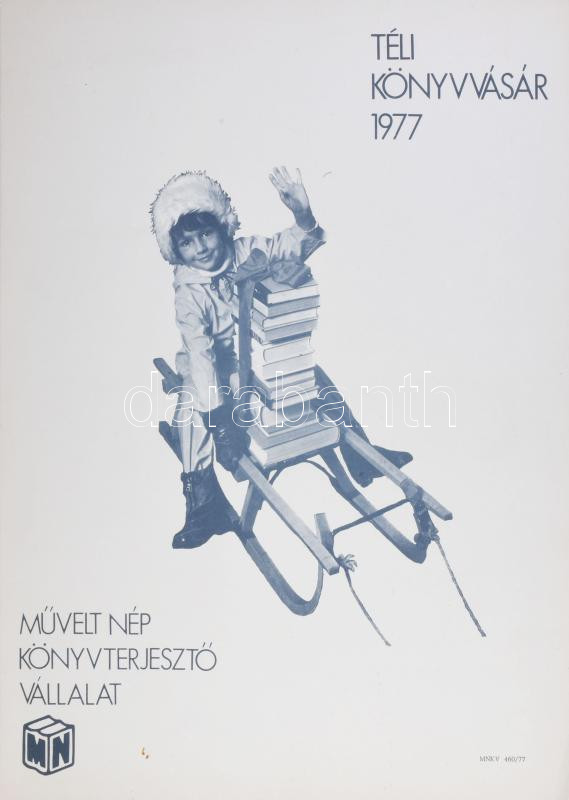 1977 Téli könyvvásár, Művelt Nép Könyvterjesztő Vállalat, plakát, 45x34 cm