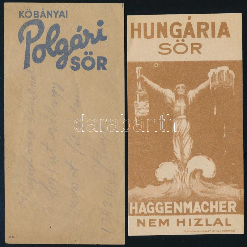 Haggenmacher Hungária Sör és Kőbányai Polgári Sör 2 db számolócédula
