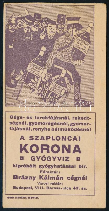 cca 1920 Bp. VIII., Szaploncai Korona Gyógyvíz, ásványvíz, Brázay Kálmán számolócédula