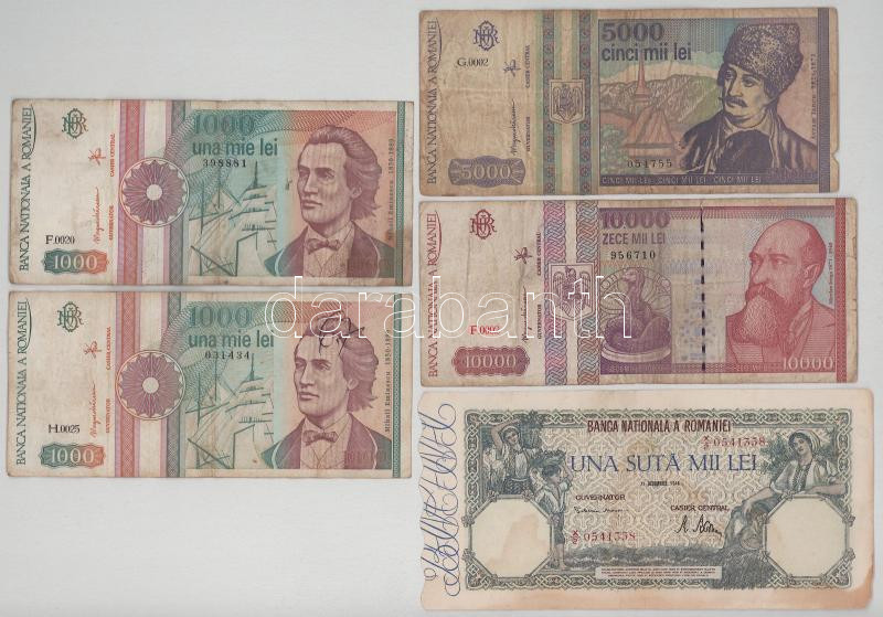 Románia 1946. 100.000L + 1991-1994. 1000L-10.000L (4db, 3xklf) T:F,VG