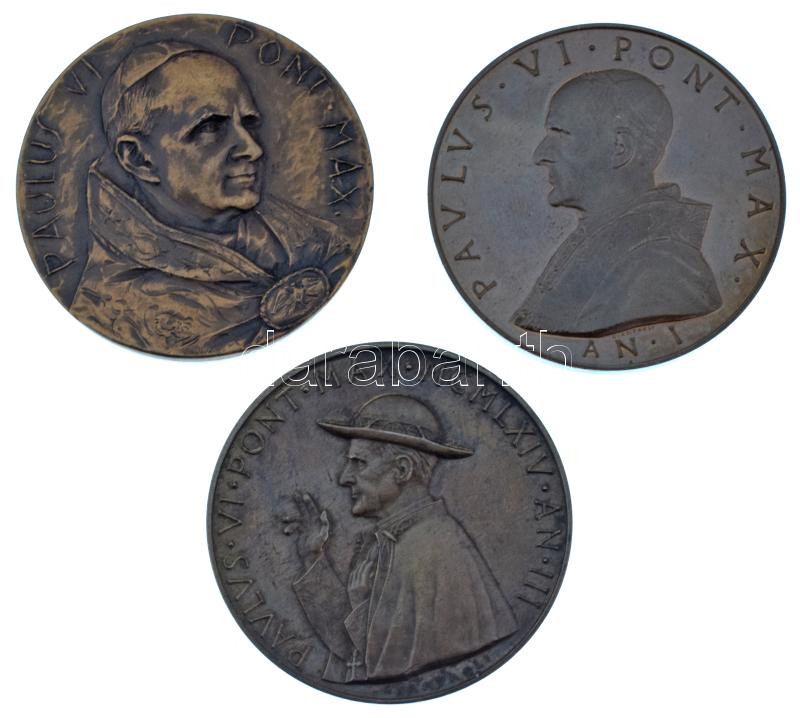 Vatikán 1963-1972. "VI. Pál pápa" 3xklf bronz emlékérem T:AU