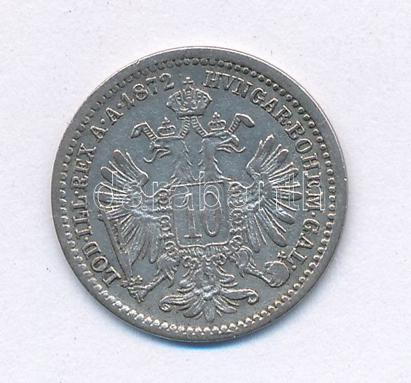 Austria 1872. 10 Kreuzer Ag "Franz Joseph" (1,59g) C:XF