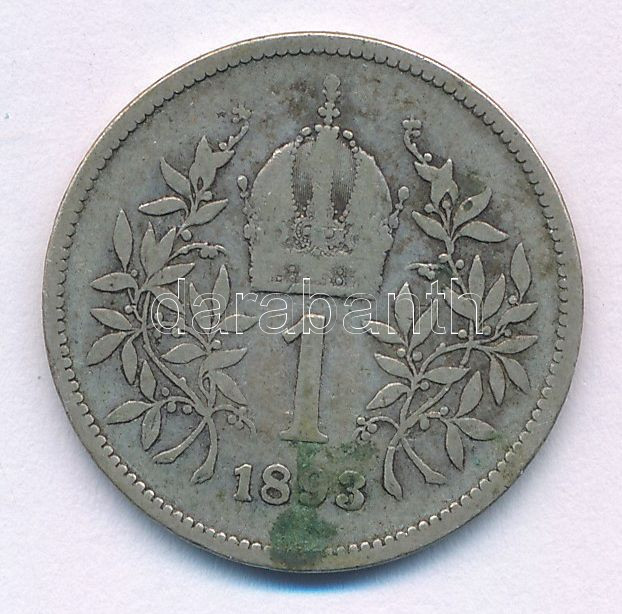 Austria 1893. 1 Corona Ag "Franz Joseph" C:F patina