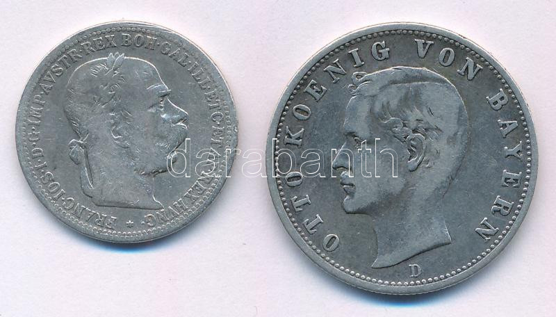 Ausztria 1895. 1K Ag "Ferenc József" + Német Államok / Bajorország 1902D 2M Ag "Ottó" T:VF-F patina
