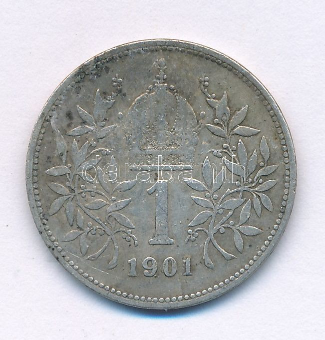 Austria 1901. 1 Corona Ag "Franz Joseph" C:VF patina, edge error