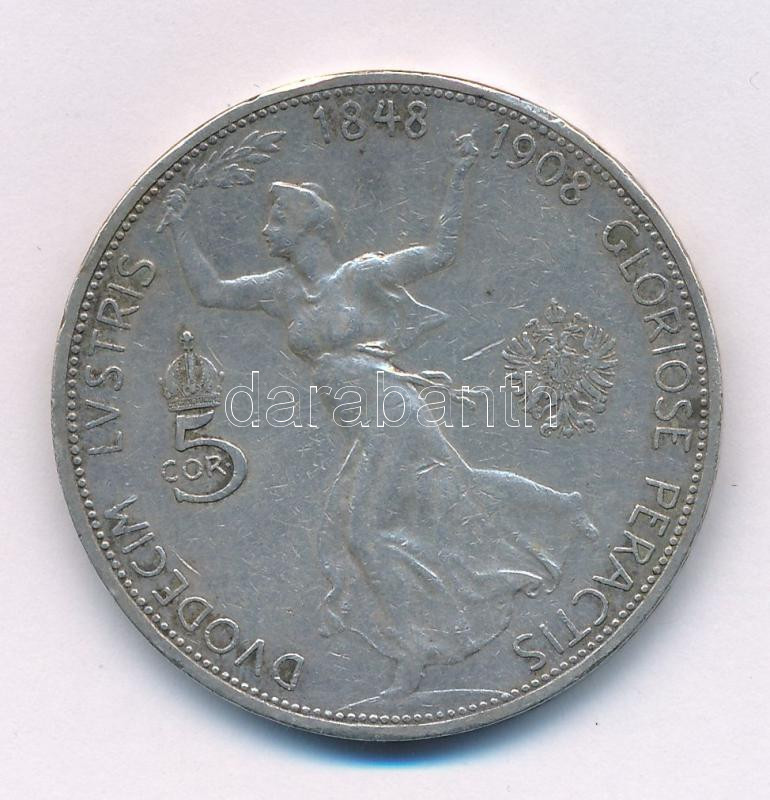 Austria 1908. 5 Corona Ag "Franz Joseph - Jubilee" C:VF,F edge error