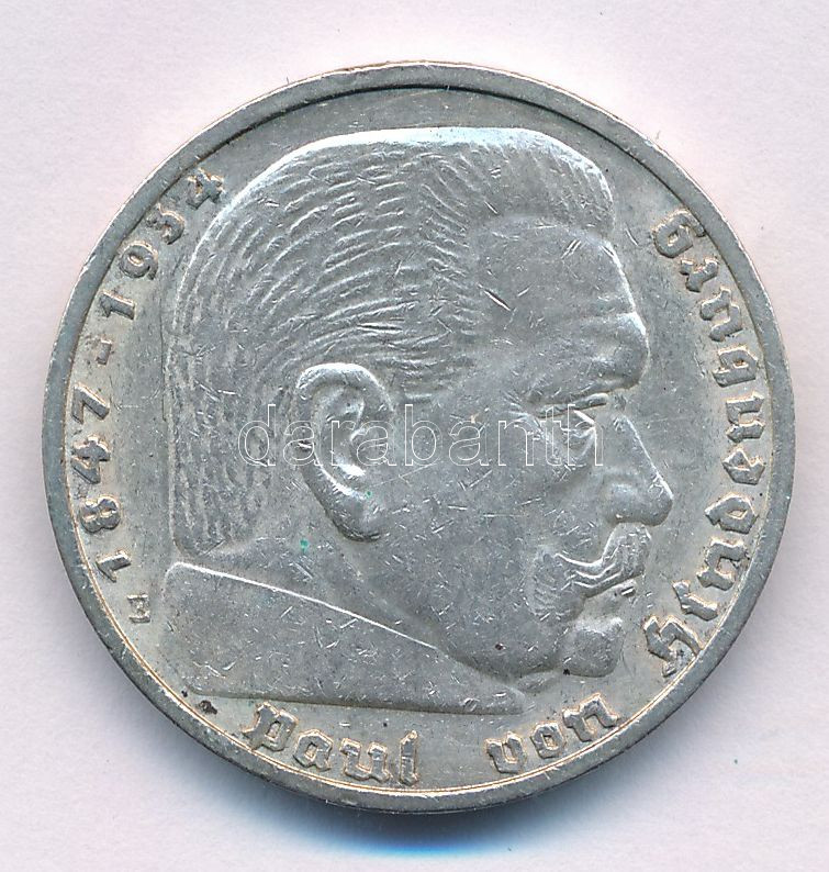 Német Harmadik Birodalom 1936E 5M Ag "Paul von Hindenburg" T:XF patina