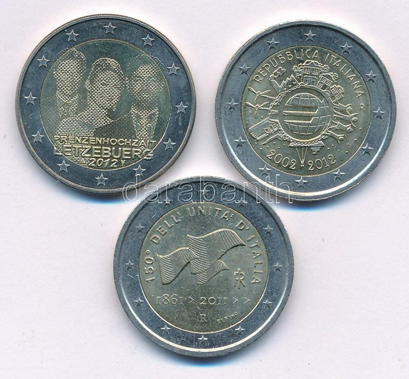 Olaszország 2011. 2E "150 éves az olasz egység" + 2012. 2E "10 éves az Euró" + Luxemburg 2012. 2E "Hercegi esküvő" T:AU,XF
