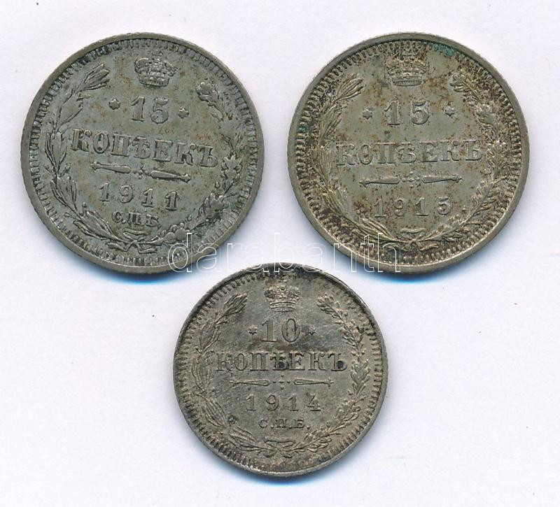 Orosz Birodalom 1914. 10k Ag + 1914. 15k Ag + 1915. 15k Ag T:XF,VF patina
