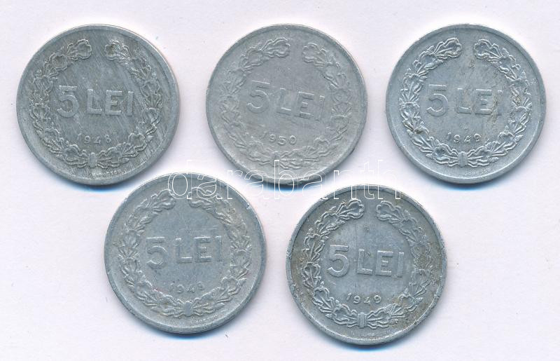 Romania 1948-1950. 5 Lei Al (5pcs, 3xdiff) C:VF,F