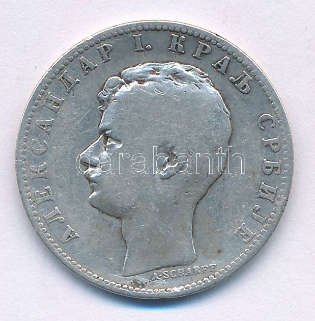 Serbia 1897. 1 Dinar Ag "Alexander I" C:VF,F