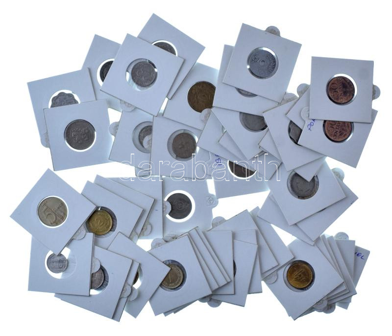 Vegyes, 50db (47xklf) érméből álló tétel, 26 különböző országból, mind ablakos tokban