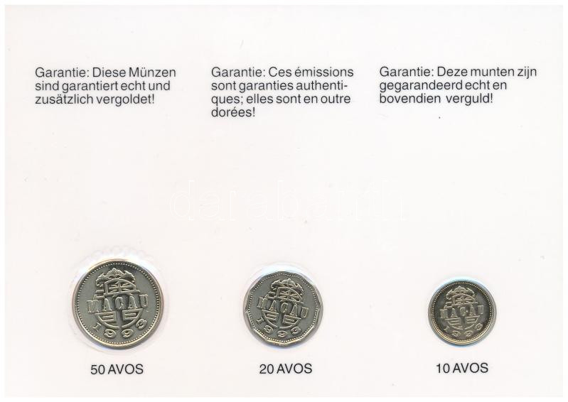 Makaó 1993. 10a - 50a (3xklf) aranyozott forgalmi összeállítás karton dísztokban, tájékoztatóval T:UNC