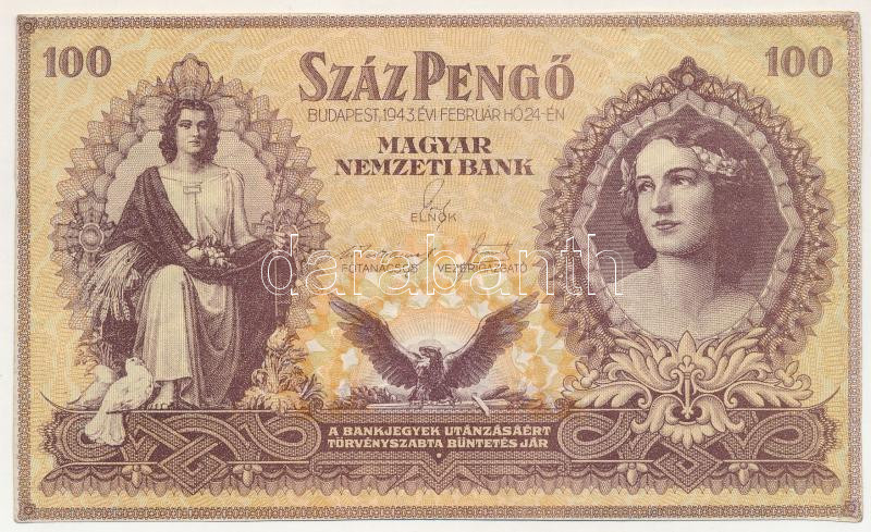 1943. 100P "Szálasi-kiadás" kiadatlan, sor- és sorozatszám nélkül, ívből kivágva T:XF de jelentősen körbevágva