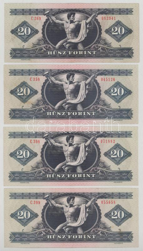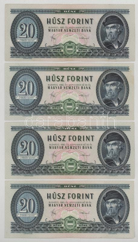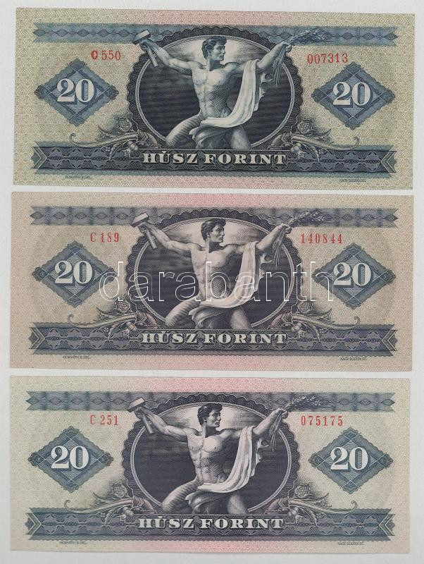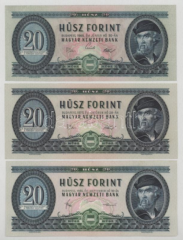 1969. 20Ft + 1975. 20Ft + 1980. 20Ft (5x) mind különféle sorozatszámmal T:VF,F mind szép papír