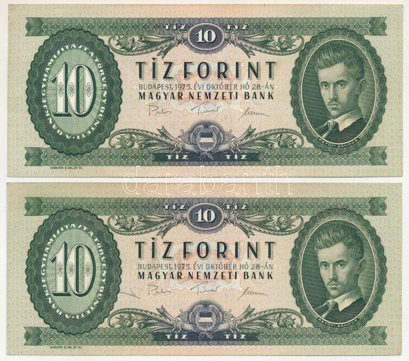 1975. 10Ft (2x) sorszámkövetők "A 122 128670- A 122 128671" T:XF Adamo F8