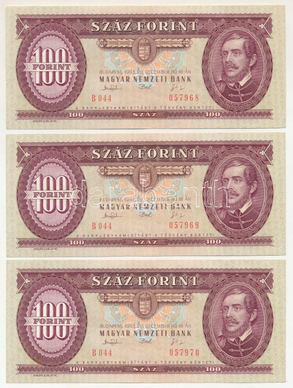 1993. 100Ft (3x) sorszámkövetők "B 044 057968 - B 044 057970" T:XF Adamo F38