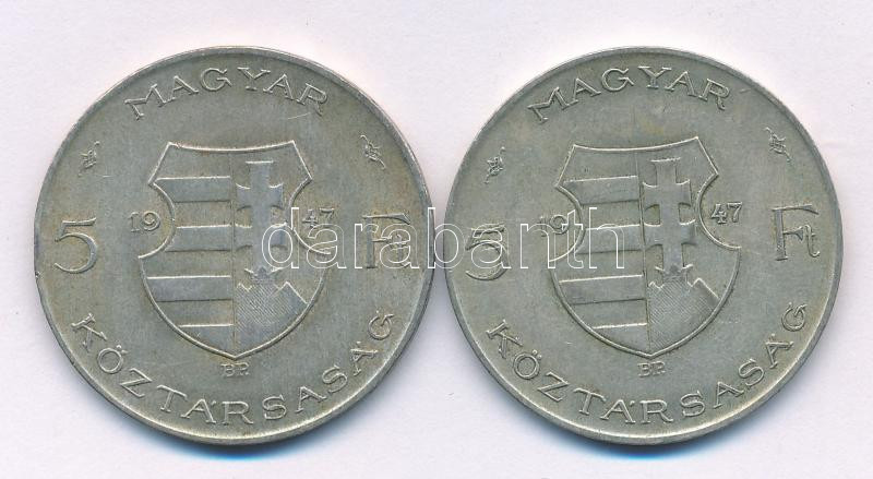 1947. 5Ft Ag "Kossuth" (2x) T:VF,F patina