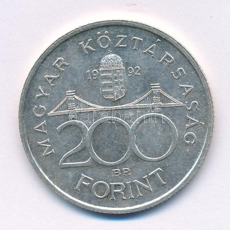 1992. 200Ft Ag "MNB" T:AU,XF patina Adamo F13
