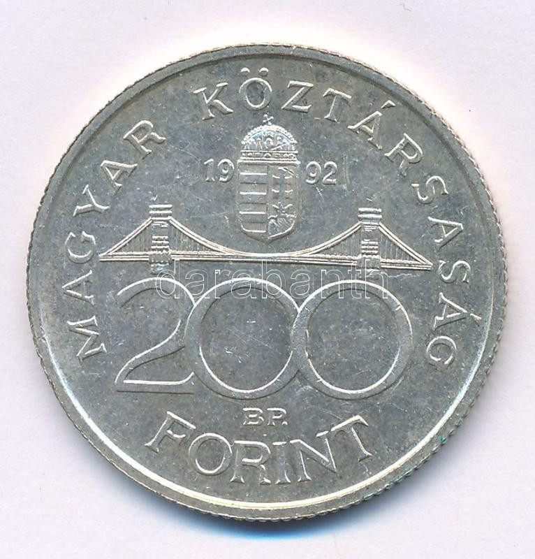 1992. 200Ft Ag "MNB" T:AU,XF patina Adamo F13