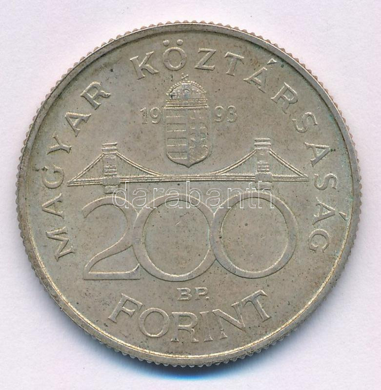 1993. 200Ft Ag "MNB" T:XF patina