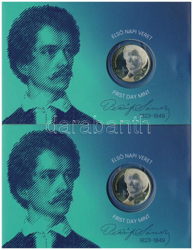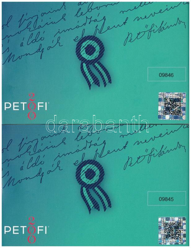 2023. 200Ft bicolor "Petőfi 200" első napi veret sorszámozott emléklapon (2x) sorszámkövetők "09845-09846" T:UNC