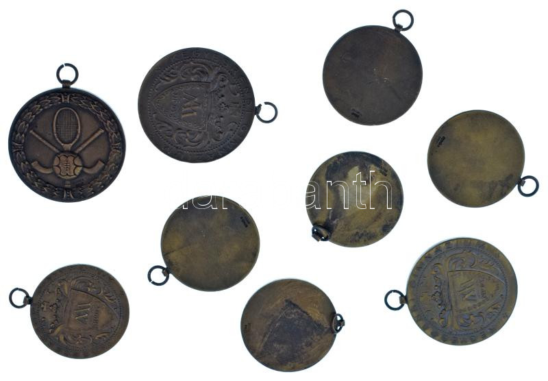 1930 k. "Kegyesrendi Gimnázium" (9db, 3xklf, 1-2-6 felosztásban) bronz sport díjérem "Berán N. Bpest" gyártói jelzéssel, füllel (3db 35mm + 6db 30mm) T:AU kis patina
