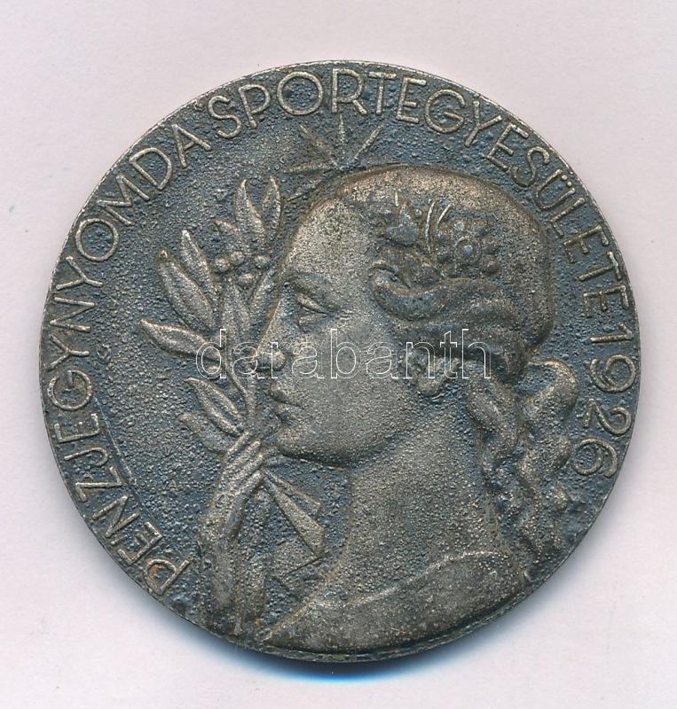 1930 k. "Pénzjegynyomda Sportegyesülete 1926" kétoldalas ezüstözött fém emlékérem. Szign.: Horváth E, (41mm) :TXF patina