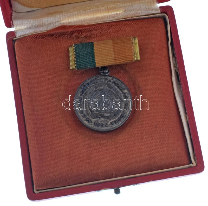 1955. "A Magyar Népköztársaság Bajnoka - 1955 / OTSB (Országos Testnevelési és Sportbizottság)" kétoldalas fém ökölvívó díjjelvény szalagon, gravírozással, nem eredeti Rákosi-címeres tokban (30mm) T:AU patina