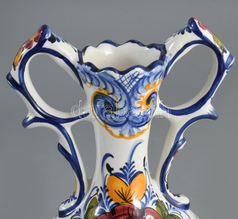 Portugál kétfüles váza, jelzett, hibátlan, m: 20,5 cm