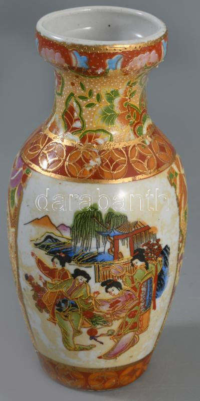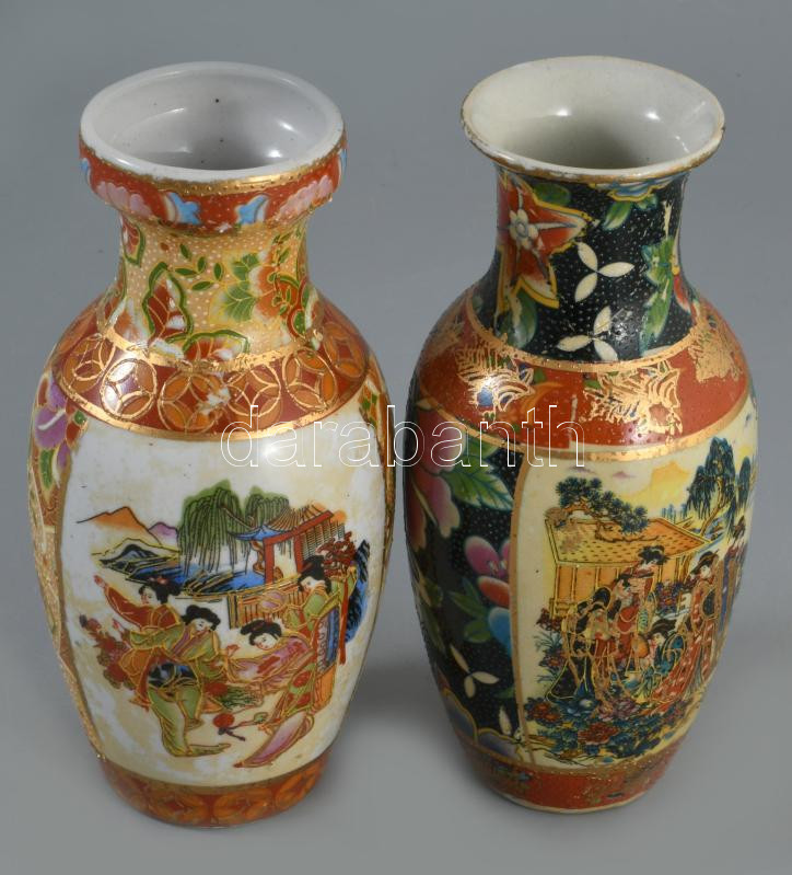 2 darab festett kínai kisváza, kopással, m: 15 cm