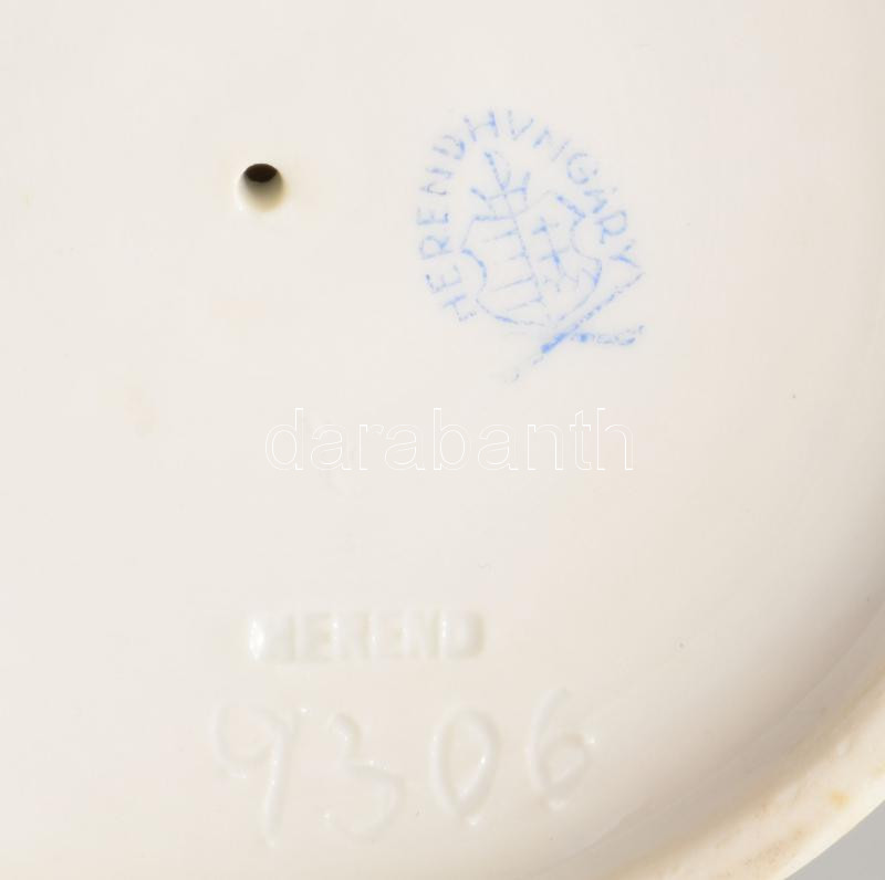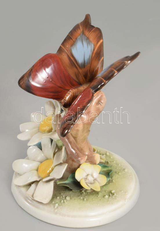 Herendi pillangó virágon. Jelzett, kézzel festett, sérüléssel, m: 11,5 cm