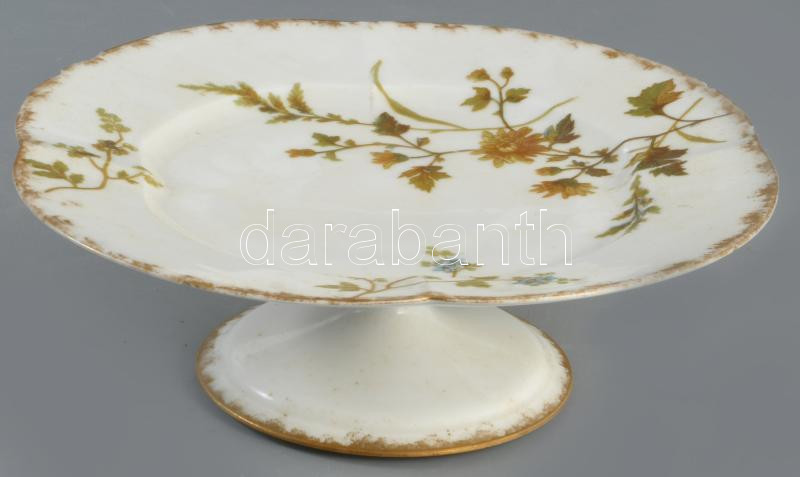 Régi francia talpas kínáló, lepattanással, jelzett, d: 23,5 cm