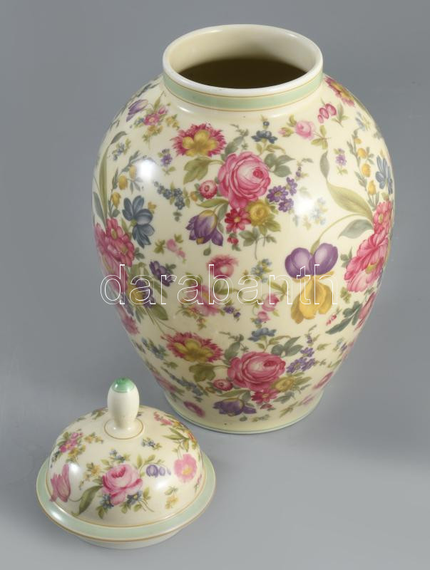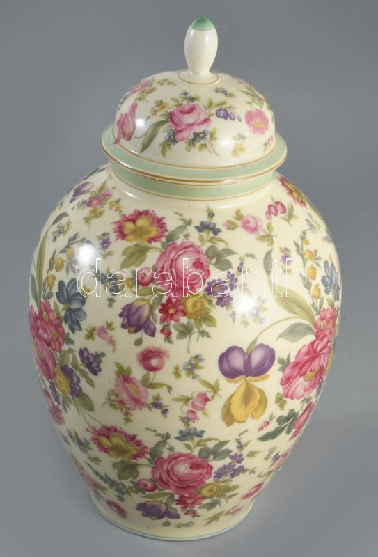 Thomas Ivory virágmintás fedeles váza, jelzett, hibátlan, m: 30 cm