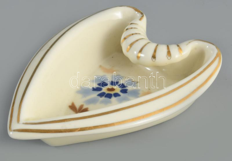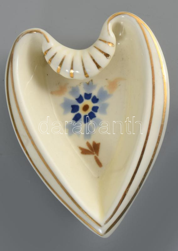 Zsolnay búzavirág mintás szív alakú ékszeres tálka. Jelzett, hibátlan, 12x8,5 cm