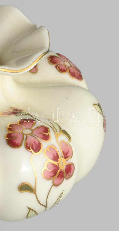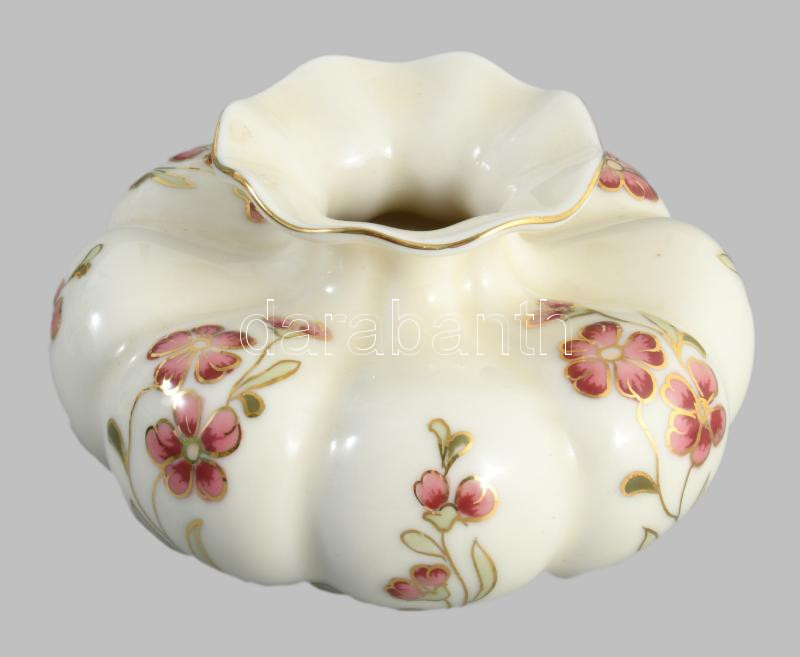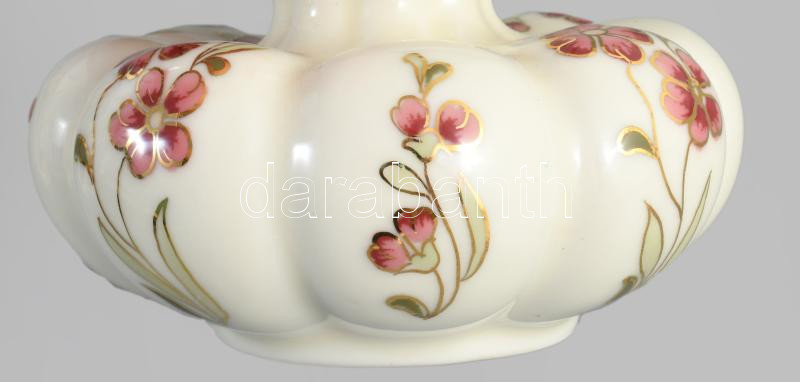 Zsolnay virágmintás paradicsomvirág váza, jelzett, hibátlan, d: 11 cm