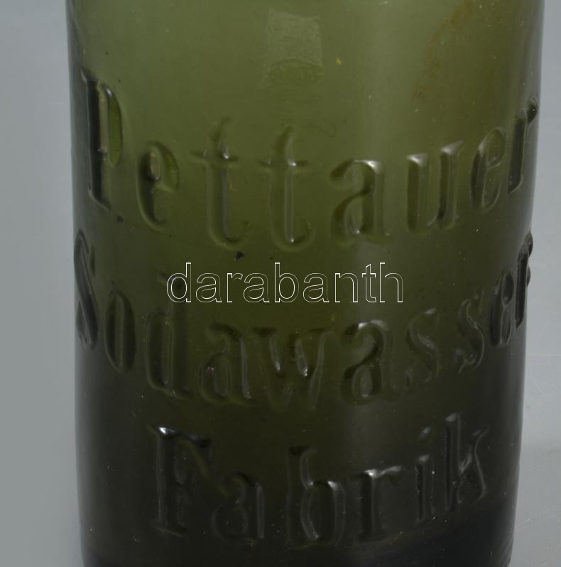 Antik Pettauer Sodawasser Fabrik zöld üveg, m: 17 cm