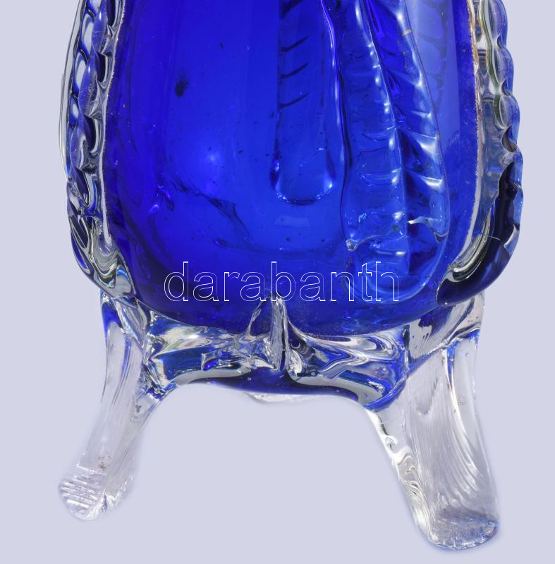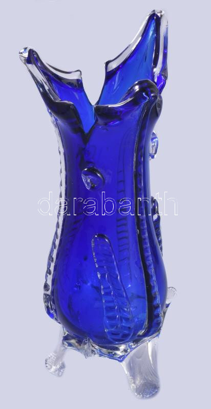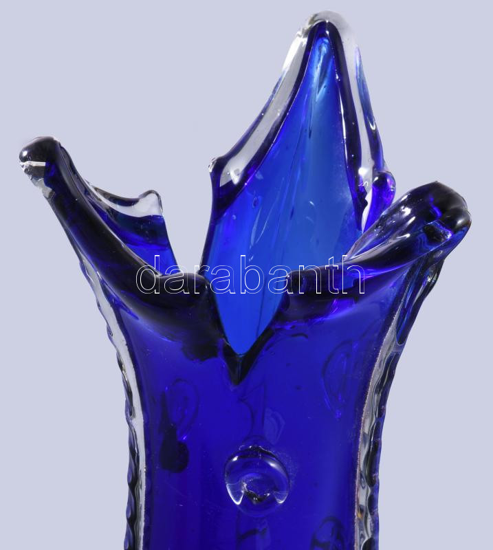 Kék hutaüveg váza, jelzés nélkül, hibátlan, m: 38 cm