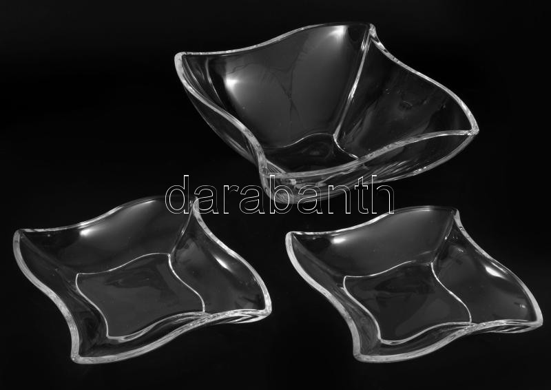 Ólomkristály kétszemélyes mogyorókínáló szett, hibátlan, 17x17 cm, 22x22 cm
