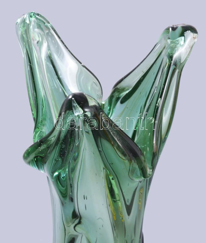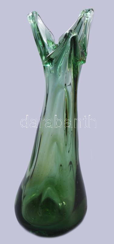 Zöld cseh hutaüveg váza. Anyagában színezett, hibátlan 47 cm