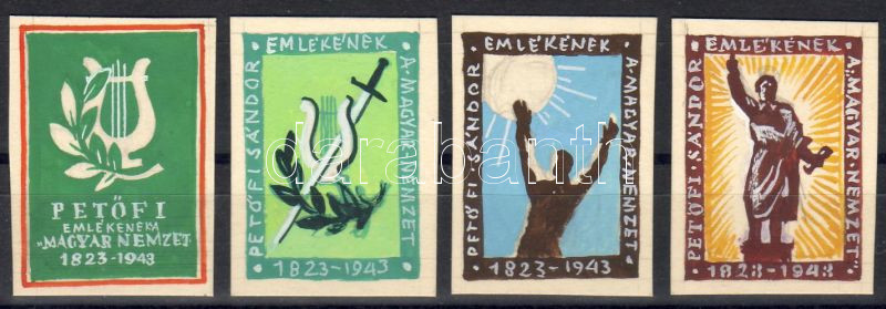 1943 Petőfi emlékére kiadott 4 értékes levélzáró sor https://www.darabanth.com/hu/52-Gyorsarveres/52.0/Filatelia/MAGYARORSZAG-HUNGARY~235/1943-Petofi-emlekere-kiadott-4-ertekes-levelzaro-sor~II101476